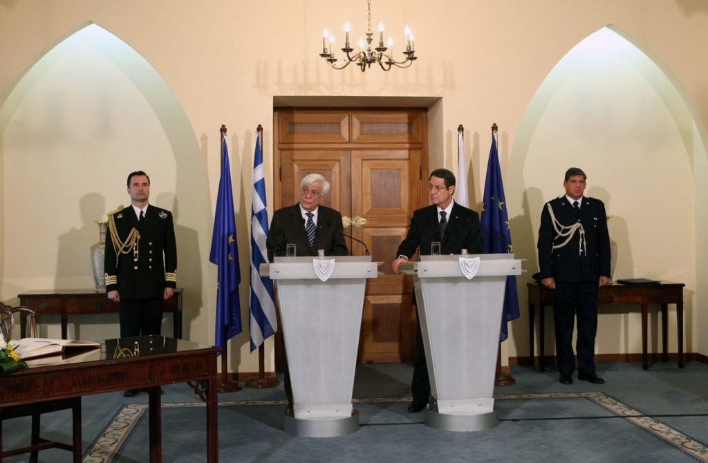 Π.ΠΑΥΛΟΠΟΥΛΟΣ: Κύριε Πρόεδρε, ευχαριστώ πάρα πολύ για την υποδοχή και τη φιλοξενία. Ακολουθώ την παράδοση όλων των Προέδρων της Ελληνικής Δημοκρατίας: Το πρώτο ταξίδι να είναι στην Κύπρο. Η τήρηση αυτής της παράδοσης δεν συνιστά όμως, ιδίως σήμερα, έναν τύπο. Η τήρηση αυτής της παράδοσης είναι βαθύτατα ουσιαστική, ιδίως υπό τις σημερινές συνθήκες, διότι υποδηλώνει ότι οι αδελφικοί δεσμοί ανάμεσα στις δύο χώρες, που συνθέτουν το κράμα του Ελληνισμού, είναι ακατάλυτοι, είναι άρρηκτοι. Και θα παραμείνουν έτσι.