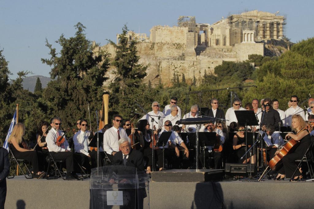 Εδώ, στον ιερό χώρο της ιστορικής Πνύκας, κηρύσσω την έναρξη των εργασιών της πεντηκοστής πέμπτης Διεθνούς Συνόδου για Νέους Μετέχοντες, την οποίαν οργανώνει η Διεθνής Ολυμπιακή Ακαδημία με την συμμετοχή 160 νέων από 86 Εθνικές Ολυμπιακές Επιτροπές. Πρόκειται για έναν θεσμό με ιδιαίτερο ουσιαστικό νόημα αλλά και εξίσου ιδιαίτερο συμβολισμό.