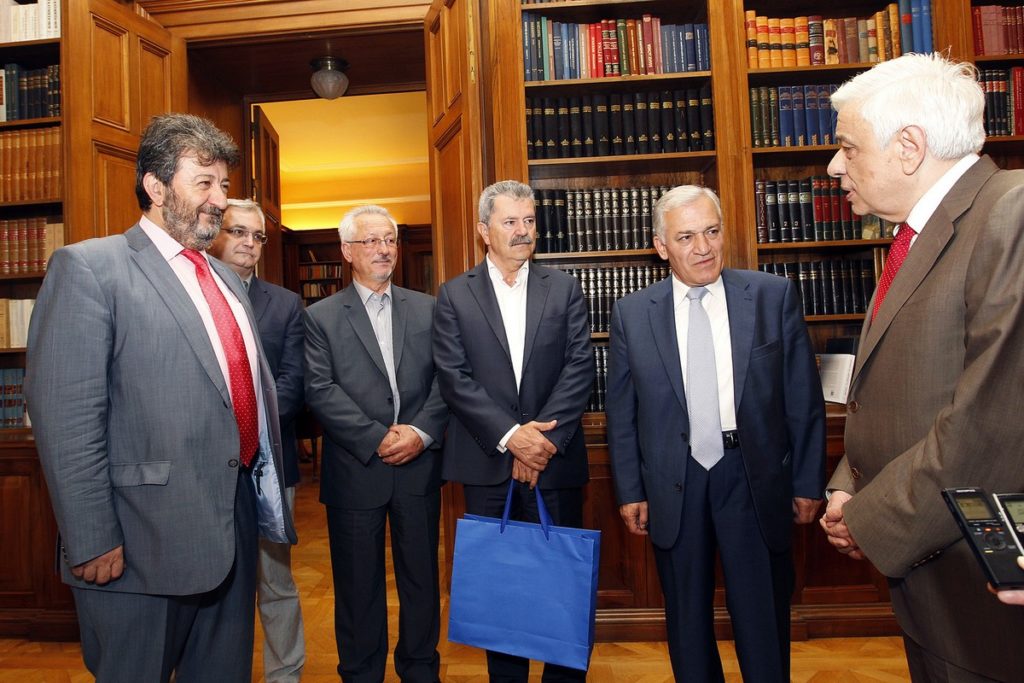 ΠΡΟΕΔΡΟΣ: Σας ευχαριστώ που ήλθατε. Μου θυμίζετε πολλά από την εποχή του Υπουργείου Εσωτερικών. Άλλες εποχές, άλλη η σημερινή εποχή. Η Τοπική Αυτοδιοίκηση, ιδίως στην περιοχή σας, έχει επωμισθεί αρμοδιότητες και βάρη που ξεπερνούν τα όριά της, δεδομένου ότι έχει να αντιμετωπίσει πλέον και την ανθρωπιστική κρίση. Θέλω να σας ευχηθώ καλή δύναμη. Έχω απόλυτη εμπιστοσύνη στις ικανότητές σας που τις έχετε άλλωστε αποδείξει, καθώς οι περισσότεροι από εσάς υπηρετείτε την Τοπική Αυτοδιοίκηση χρόνια. Πραγματικά, λοιπόν, με χαρά σας βλέπω και όσο μπορώ, στο πλαίσιο των αρμοδιοτήτων μου, να το ξέρετε, την Τοπική Αυτοδιοίκηση θα τη στηρίζω πάντοτε ως κύτταρο της Δημοκρατίας, αλλά και ως πυλώνα της κοινωνίας αυτή την εποχή.