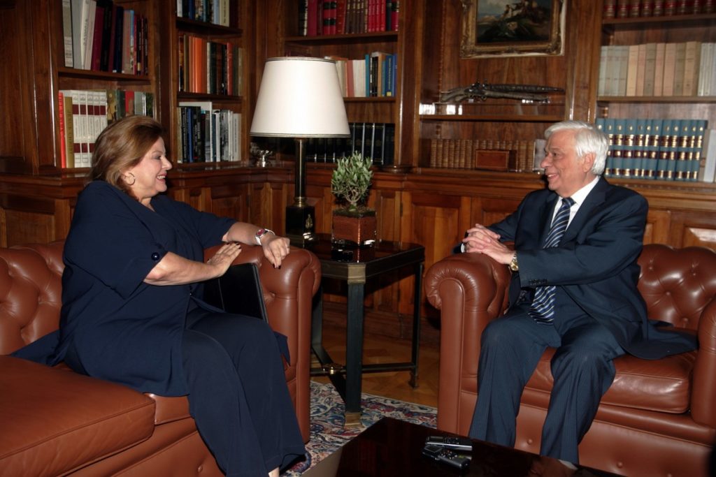 Από τη συνάντηση του Προέδρου της Δημοκρατίας κ.Προκόπη Παυλόπουλου με την Πρόεδρο της Εθνικής Τράπεζας της Ελλάδος και Πρόεδρο της Ελληνικής Ένωσης Τραπεζών κα Λούκα Κατσέλη στο Προεδρικό Μέγαρο