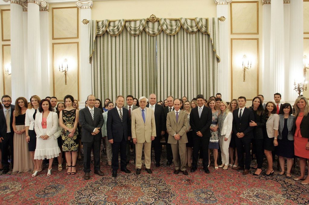 Ο Πρόεδρος της Δημοκρατίας Προκόπης Παυλόπουλος (Κ) σε οικογενειακή φωτογραφία με τους σπουδαστές της 20ης εκπαιδευτικής σειράς της Εθνικής Σχολής Δικαστικών Λειτουργών, υποψήφιους Δόκιμους Εισηγητές του Συμβουλίου της Επικρατείας και του Ελεγκτικού Συνεδρίου και υποψήφιους Παρέδρους των Διοικητικών Δικαστηρίων σε συνάντηση που είχαν στο Προεδρικό Μέγαρο, Τρίτη 28 Ιουλίου 2015. ΑΠΕ ΜΠΕ/ΑΠΕ ΜΠΕ/ΑΛΕΞΑΝΔΡΟΣ ΜΠΕΛΤΕΣ