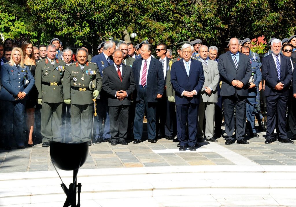 Ο Πρόεδρος της Δημοκρατίας, Προκόπης Παυλόπουλος (Κ) με τον υφυπουργό παρά τω Πρωθυπουργό Τέρενς Κουίκ (2Δ), παρακολουθούν τις εορταστικές εκδηλώσεις, την Κυριακή 27 Σεπτεμβρίου 2015, στην Τρίπολη. Με την παρουσία του Προέδρου της Δημοκρατίας Προκόπη Παυλόπουλου τελέστηκαν σήμερα οι εορταστικές εκδηλώσεις για την 194η επέτειο άλωσης της Τρίπολης από τον Θεόδωρο Κολοκοτρώνη και τους επαναστατημένους Έλληνες, στις 23 Σεπτεμβρίου 1821, σηματοδοτώντας την απαρχή του νεότερου Ελληνικού κράτους. Το πρωί τελέστηκε στον καθεδρικό ιερό ναό του Αγίου Βασιλείου επίσημη δοξολογία, προεξάρχοντος του μητροπολίτου Μεσσηνίας Χρυσοστόμου, όπου παρέστησαν ο Πρόεδρος της Δημοκρατίας, ο υφυπουργός παρά τω Πρωθυπουργό Τέρενς Κουίκ, εκπροσωπώντας την κυβέρνηση, πολιτικοί, και εκπρόσωποι των στρατιωτικών και δικαστικών αρχών της πόλης, του νομούς και της περιφέρειας Πελοποννήσου. Ακολούθησε επιμνημόσυνη δέηση στο μνημείο Αρχιερέων και Προκρίτων, κατάθεση στεφάνου από τον Πρόεδρο της Δημοκρατίας, στον ανδριάντα του Θεόδωρου Κολοκοτρώνη και παρέλαση στρατιωτικών, μαθητικών και πολιτικών τμημάτων. Α