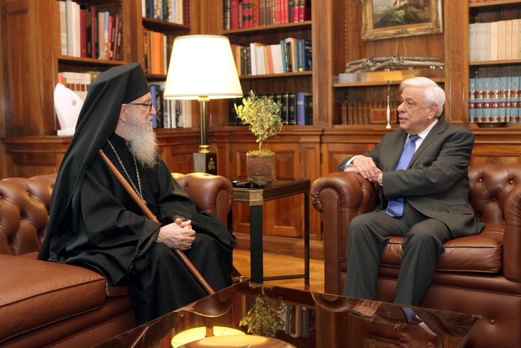 ΑΡΧΙΕΠΙΣΚΟΠΟΣ: Κύριε Πρόεδρε, σας ευχαριστώ πάρα πολύ. Πρέπει να σας πω ότι αισθάνομαι πάρα πολύ μεγάλη τιμή και συγκίνηση που είμαι μαζί σας. Θεωρώ ότι αυτός είναι ένας ιερός χώρος, δεν είναι απλώς επίσημος. Και θεωρώ ότι έχει ένα στοιχείο πολύ σημαντικό: ότι είστε εσείς ο Πρόεδρος. Διότι και στην κρίση στην οποία βρεθήκατε, μόλις σχεδόν αναλάβατε τα καθήκοντά σας, δείξατε έναν ασυνήθη συνδυασμό μεγάλου πάθους, με πολλή σοφία και πολλή στοργή. Αυτά δεν συνδυάζονται εύκολα. Εσείς το δείξατε με τρόπο πραγματικά υπέροχο. Και σας είμεθα ευγνώμονες. Και το σημείωσαν οι άνθρωποι στην ομογένεια: «Δείτε πώς κινήθηκε ο Πρόεδρος της Δημοκρατίας της Ελλάδας». Έπαιξε πολύ μεγάλο ρόλο η παρουσία σας. Όντως αισθανόμαστε ότι έχουμε μια πολύ μεγάλη ευθύνη.