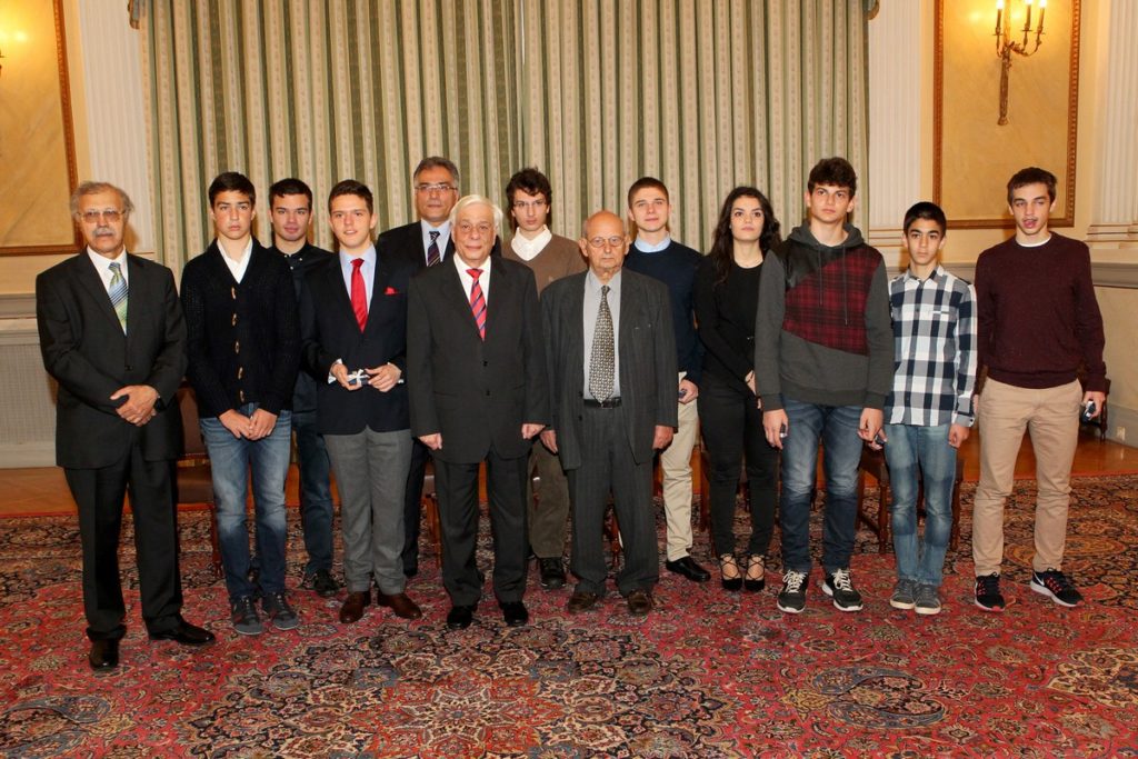 ΠΡΟΕΔΡΟΣ: Θέλω να σας συγχαρώ θερμώς για την επιτυχία σας. Και να σας τονίσω ότι αυτή η επιτυχία είναι ένα σημαντικό εφαλτήριο για όσα μπορείτε να κάνετε στο μέλλον. Όπως, επίσης, θέλω να επισημάνω πως στο πρόσωπό σας η Προεδρία της Δημοκρατίας, και εγώ προσωπικώς, θέλουμε να τιμήσουμε όλους τους συναδέλφους σας, οι οποίοι διακρίνονται εντός και εκτός Ελλάδος γι’ αυτά τα οποία κάνουν. Ξέρω, επίσης, ότι συνάδελφοί σας δεν μπόρεσαν να έρθουν γιατί οι αποστάσεις είναι μεγάλες. Θέλω να τους διαβιβάσετε ότι τα συγχαρητήρια και οι ευχές αφορούν φυσικά και αυτούς. Έχετε την τύχη να ξεκινάτε τη ζωή σας με αυτήν την διάκριση, η οποία όπως είπα είναι μια σημαντική ψυχική ενίσχυση στους δύσκολους καιρούς που ζούμε. Να ξέρετε, όμως, και κάτι άλλο: Όσες δυσκολίες κι αν βρείτε μπροστά σας, μπορείτε να τις υπερνικήσετε. Θέλω να πιστεύω – και θα κάνω ό,τι μπορώ στο μέλλον – οι δυσκολίες που θα συναντήσετε για να αναπτύξετε την προσωπικότητά σας να είναι λιγότερες. Αλλά δεν υπάρχει δυσκολία για τον άνθρωπο που να μην μπορεί να την υπερνικήσει όταν έχει τις ικανότητες και πιστεύει σε αυτές. Να πιστεύετε στον εαυτό σας. Να πιστεύετε στις δυνάμεις σας και να ξέρετε ότι δεν έχετε να ζηλέψετε τίποτα απολύτως από τους συναδέλφους σας στο εξωτερικό.