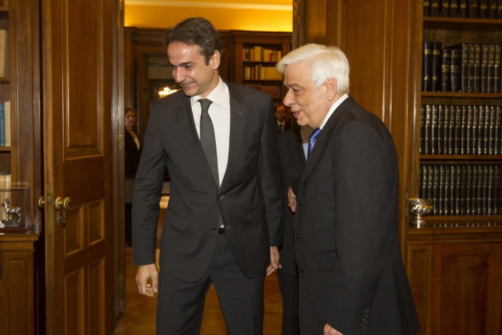 (Ξένη δημοσίευση) Ο Πρόεδρος της Δημοκρατίας Προκόπης Παυλόπουλος (Δ) υποδέχεται με τον πρόεδρο της Νέας Δημοκρατίας Κυριάκο Μητσοτάκη (Α), κατά τη διάρκεια της συνάντησής τους, την Τετάρτη 20 Ιανουαρίου 2016, στο Προεδρικό Μέγαρο. ΑΠΕ-ΜΠΕ/ΓΡΑΦΕΙΟ ΤΥΠΟΥ ΝΔ/ΔΗΜΗΤΡΗΣ ΠΑΠΑΜΗΤΣΟΣ