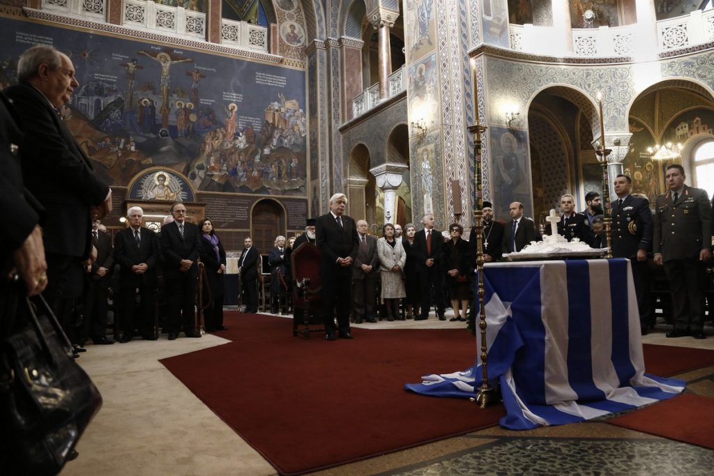 Εκ μέρους της Ελληνικής Πολιτείας ας μου επιτραπεί ν’απονείμω, με την ευκαιρία του Μνημοσύνου αυτού, τον οφειλόμενο έπαινο στους, διαχρονικώς, διατελέσαντες εκπροσώπους του Ελληνικού Λαού, οι οποίοι δεν είναι πια μαζί μας. Έναν έπαινο ο οποίος, με βάση τα έργα τους, αφορά την μεγάλη πλειοψηφία τους και στοχεύει στην, έστω και εκ των υστέρων, δικαίωσή τους.