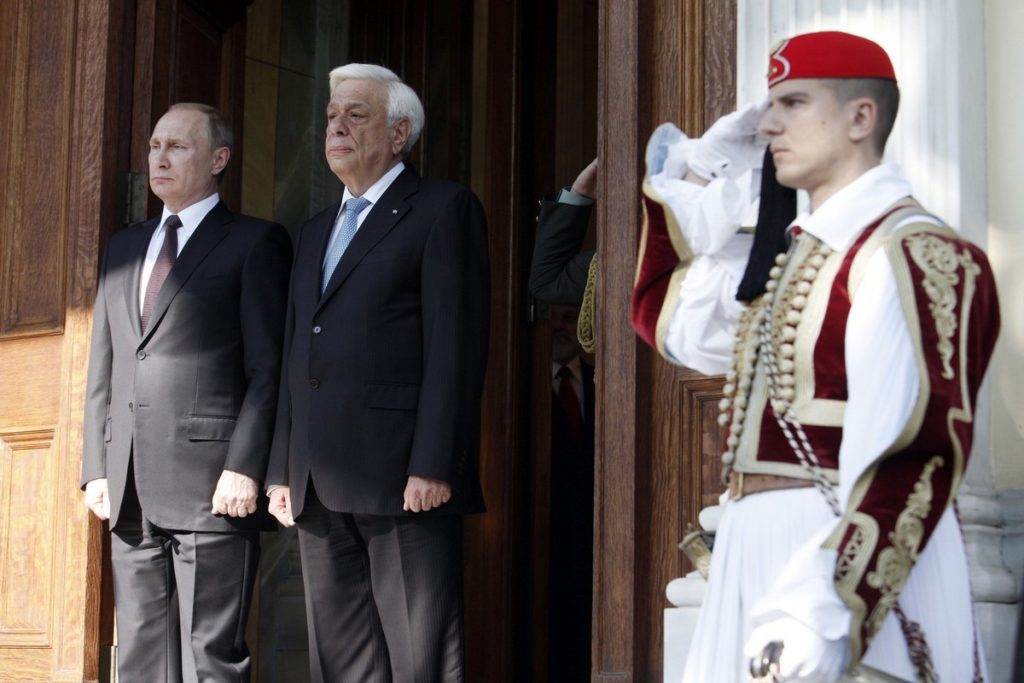 Ο Πρόεδρος της Δημοκρατίας Προκόπης Παυλόπουλος (Κ) υποδέχεται τον Πρόεδρο της Ρωσίας Βλαντίμιρ Πούτιν (Α) στο Προεδρικό Μέγαρο κατά τη διάρκεια συνάντησής τους, Αθήνα, Παρασκευή 27 Μαΐου 2016. Ο Πρόεδρος της Ρωσικής Ομοσπονδίας, Βλαντίμιρ Πούτιν, πραγματοποιεί διήμερη επίσκεψη εργασίας στην Ελλάδα στο πλαίσιο του Αφιερωματικού Έτους Ελλάδας - Ρωσίας 2016. ΑΠΕ-ΜΠΕ/POOL EUROKINISSI/ΓΙΩΡΓΟΣ ΚΟΝΤΑΡΙΝΗΣ
