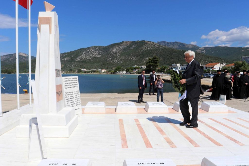 Ο Πρόεδρος της Δημοκρατίας, Προκόπης Παυλόπουλος (Δ) καταθέτει στεφάνι στο Ηρώο των πεσόντων συμμάχων και Ελλήνων αεροπόρων που επιχειρούσαν από το αεροδρόμιο του νησιού κατά τη διάρκεια της επίσκεψής του στη Θάσο, Τετάρτη 29 Ιουνίου 2016. Ο Πρόεδρος της Δημοκρατίας Προκόπης Παυλόπουλος, πραγματοποιεί επίσκεψη στην Καβάλα και την Θάσο για να παραστεί στις εορταστικές εκδηλώσεις της επετείου της απελευθέρωσης της πόλης και του πολιούχου της, Απόστολου Παύλου. ΑΠΕ-ΜΠΕ/ΑΠΕ-ΜΠΕ/Χάρης Ιορδανίδης