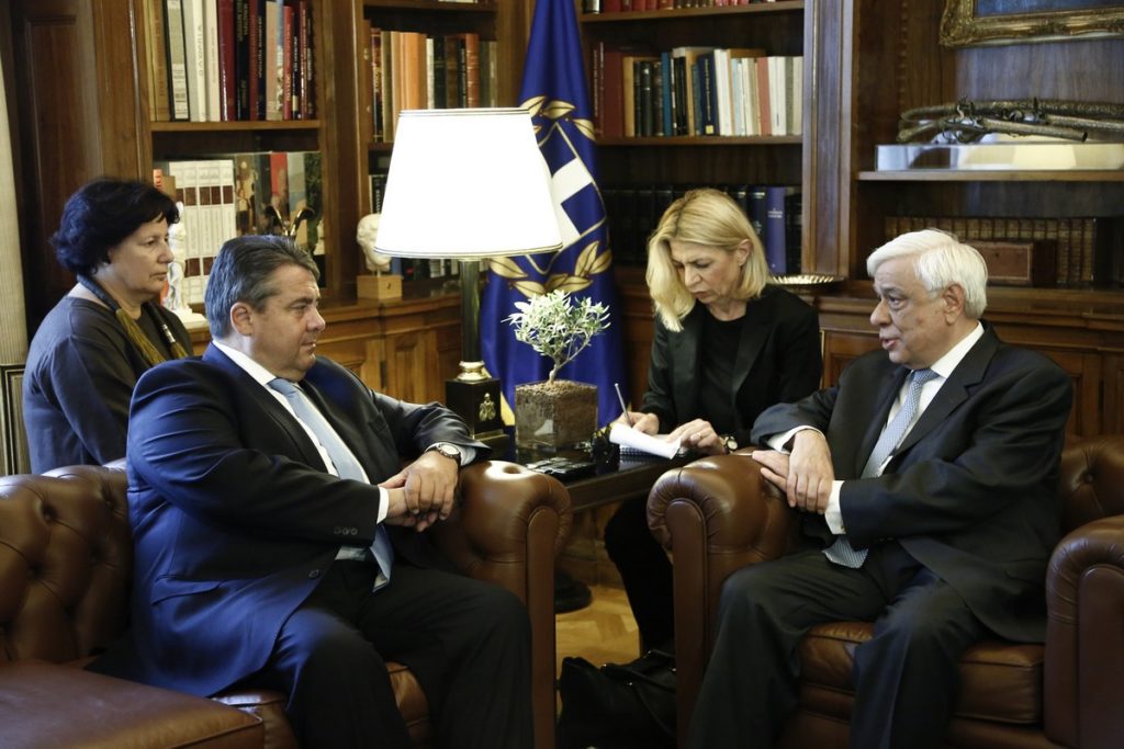 Ο Πρόεδρος της Δημοκρατίας Προκόπης Παυλόπουλος (Δ) συνομιλεί με τον Αντικαγκελάριο και υπουργό Οικονομίας και Ενέργειας της Ομοσπονδιακής Δημοκρατίας της Γερμανίας Sigmar Gabriel (Α), στο Προεδρικό Μέγαρο, Αθήνα Πέμπτη 30 Ιουνίου 2016 ΑΠΕ-ΜΠΕ/ΑΠΕ-ΜΠΕ/ΓΙΑΝΝΗΣ ΚΟΛΕΣΙΔΗΣ