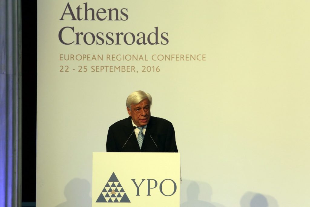 Ο Πρόεδρος της Δημοκρατίας Προκόπης Παυλόπουλος κατά το χαιρετισμό του στην εναρκτήρια εκδήλωση του European Regional Conference του Παγκόσμιου Οργανισμού Επιχειρηματιών ΥΡΟ στο περιστύλιο του Ζαππείου, Πέμπτη 22 Σεπτεμβρίου 2016. ΑΠΕ-ΜΠΕ/ΑΠΕ-ΜΠΕ/Αλέξανδρος Μπελτές