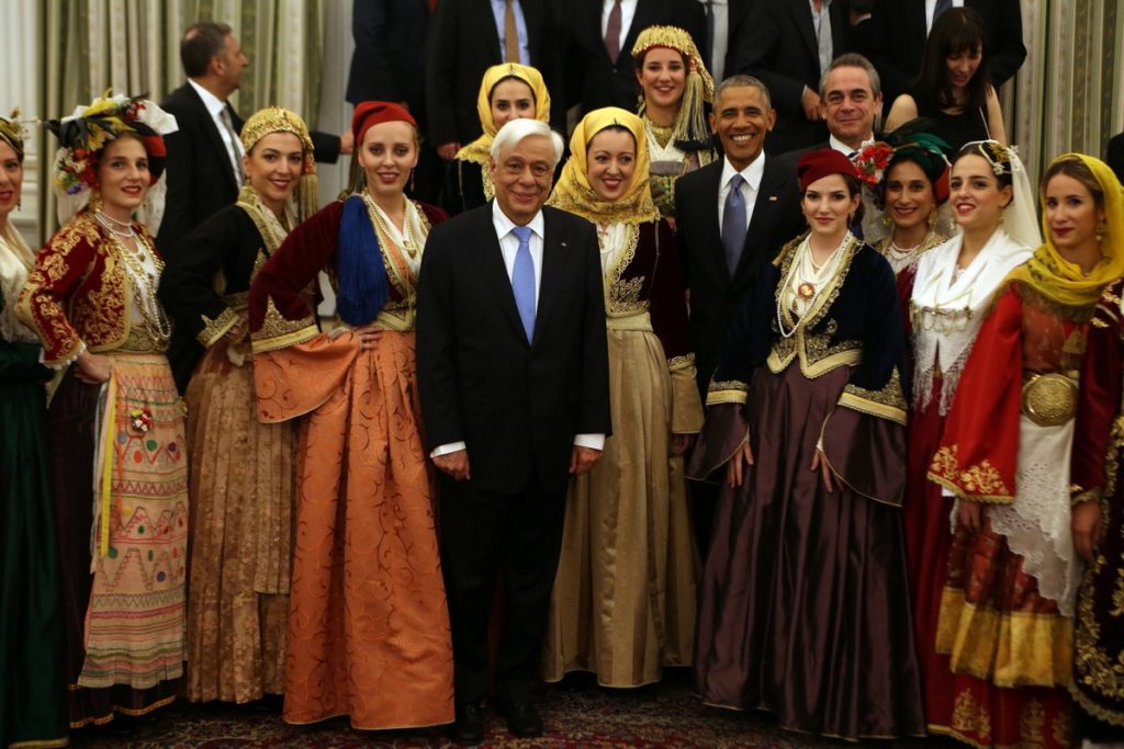 O πρόεδρος της Δημοκρατίας Προκόπης Παυλόπουλος και ο Πρόεδρος των ΗΠΑ Μπάρακ Ομπάμα φωτογραφίζονται με το Λύκειο Ελληνίδων, μετά το επίσημο δείπνο, στο Προεδρικό Μέγαρο, στο πλαίσιο της διήμερης επίσκεψης που πραγματοποιεί ο πρόεδρος των ΗΠΑ στην Αθήνα, Τρίτη 15 Νοεμβρίου 2016. ΑΠΕ-ΜΠΕ/ΑΠΕ-ΜΠΕ/Αλέξανδρος Μπελτές