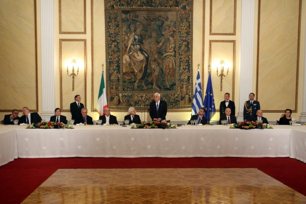 Προσφώνηση του Προέδρου της Δημοκρατίας κ.Προκόπιου Παυλόπουλου προς τον Πρόεδρο της Ιταλικής Δημοκρατίας κ.Sergio Mattarella κατά το επίσημο γεύμα στο Προεδρικό Μέγαρο