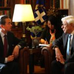 M.BAΡΔΙΝΟΓΙΑΝΝΗ: Αισθάνομαι πολύ μεγάλη συγκίνηση, κύριε Πρόεδρε, που βρίσκομαι πάλι εδώ με την αγαπημένη φίλη μας κυρία Kerry Kennedy, που μας συνδέουν τόσοι δεσμοί δεκαετιών, από το 1980, με τους αγαπημένους της γονείς, φίλους, και είναι τόσο συγκινητικό που αναφέρεται στη χώρα μας, τον πολιτισμό μας. Εμείς διδάξαμε τη Δημοκρατία και είναι κάτι που σέβεται και ο πατέρας της, ο μεγάλος αυτός φιλέλληνας, έχει αναφερθεί πάρα πολλές φορές στη Δημοκρατία που η χώρα μας τη δίδαξε, και είχε έρθει πολλές φορές ο ίδιος και στην Ελλάδα. Γι’αυτό αισθάνομαι ιδιαίτερα χαρούμενη και υπερήφανη που η Kerry – που προέρχεται από μια οικογένεια που έχει αφιερώσει τη ζωή της και η ίδια προσωπικά είναι μια μεγάλη ακτιβίστρια, πηγαίνει σε όλες τις χώρες του κόσμου για να διδάξει τις αρχές και τις αξίες που πρέπει να προστατεύσουμε εμείς και να τις μεταδώσουμε και στα παιδιά μας – βρίσκεται σήμερα κοντά μας και θαυμάζει τη χώρα μας και τον πολιτισμό μας, σαν να θέλει να μας περάσει το μήνυμα ότι εμείς την διδάξαμε.