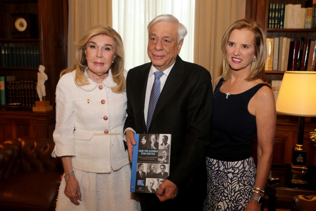 ΠΡΟΕΔΡΟΣ: Κυρία Κέννεντυ, με ιδιαίτερη χαρά σας υποδέχομαι για δεύτερη φορά στην Προεδρία της Δημοκρατίας. Και θέλω να ευχαριστήσω εσάς αλλά και την κυρία Βαρδινογιάννη γιατί οι σχέσεις της Ελλάδας με το Ίδρυμα «ROBERT KENNEDY» γίνονται πιο στενές και εξαιτίας της δικής της παρέμβασης. Τούτο οφείλεται και στη βράβευσή της το 2015 για την δράση της αλλά, κυρίως, στην συνεργασία που έχει το Ίδρυμα “ROBERT KENNEDY” με το Ίδρυμα «ΜΑΡΙΑΝΝΑ ΒΑΡΔΙΝΟΓΙΑΝΝΗ» ως προς την ενημέρωση των μαθητών σχετικά με τα Δικαιώματα του Ανθρώπου. Και είναι κάτι εξαιρετικά σημαντικό στην εποχή μας, ιδίως για την Ελλάδα.