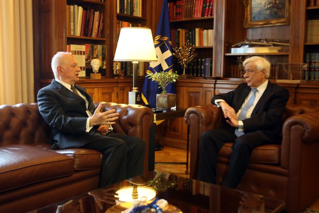 Ο Πρόεδρος της Δημοκρατίας Προκόπης Παυλόπουλος (Δ) συνομιλεί με τον υπουργό Οικονομίας και Ανάπτυξης Δημήτρη Παπαδημητρίου (Α) κατά την διάρκεια της συνάντησης τους στο Προεδρικό Μέγαρο, Τετάρτη 24 Μαΐου 2017. ΑΠΕ-ΜΠΕ/ΑΠΕ-ΜΠΕ/ΑΛΕΞΑΝΔΡΟΣ ΜΠΕΛΤΕΣ