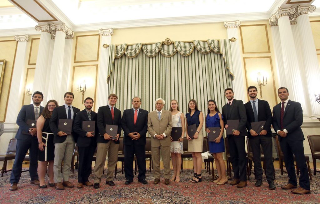 Ο Πρόεδρος της Δημοκρατίας Προκόπης Παυλόπουλος (Κ) φωτογραφίζεται με ομάδα ελληνο-αμερικανών φοιτητών του Ελληνο-Αμερικανικού Ινστιτούτου (ΑΗΙ) στo πλαίσιο της 9ης  ετήσιας επίσκεψής τους στην Ελλάδα, με επικεφαλής τον πρόεδρο Nick Larigakis (6Α), στο Προεδρικό Μέγαρο, Αθήνα, τη Δευτέρα 03 Ιουλίου 2017. ΑΠΕ-ΜΠΕ/ΑΠΕ-ΜΠΕ/ΣΥΜΕΛΑ ΠΑΝΤΖΑΡΤΖΗ