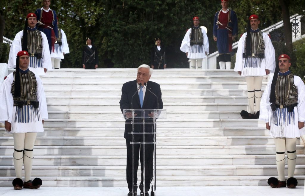 Ο Πρόεδρος της Δημοκρατίας Προκόπης Παυλόπουλος μιλάει στους προσκεκλημμένους στη δεξίωση για την 43η επέτειο από την αποκατάσταση της Δημοκρατίας στο Προεδρικό Μέγαρο, Αθήνα, τη Δευτέρα 24 Ιουλίου 2017. ΑΠΕ-ΜΠΕ/ΑΠΕ-ΜΠΕ/ΣΥΜΕΛΑ ΠΑΝΤΖΑΡΤΖΗ
