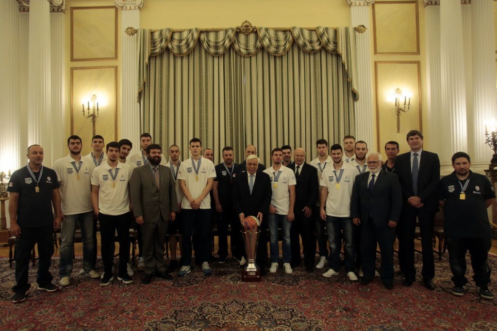 Ο Πρόεδρος της Δημοκρατίας Προκόπιος Παυλόπουλος φωτογραφίζεται με την Εθνική Ομάδα Νέων Ανδρών του μπάσκετ, που κατέκτησε το Ευρωπαϊκό πρωτάθλημα U20, στο Προεδρικό Μέγαρο, Τρίτη 25 Ιουλίου 2017. ΑΠΕ-ΜΠΕ/ΑΠΕ-ΜΠΕ/ΑΛΕΞΑΝΔΡΟΣ ΒΛΑΧΟΣ