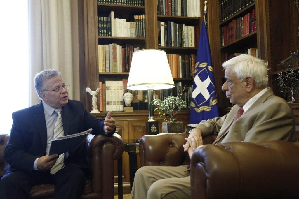 Ο Πρόεδρος της Δημοκρατίας Προκόπης Παυλόπουλος (Δ) συνομιλεί με τον πρόεδρο του συλλόγου «Χαμόγελο του Παιδιού» Κωνσταντίνο Γιαννόπουλο (Α), στο Προεδρικό Μέγαρο, Αθήνα Παρασκευή 4 Αυγούστου 2017. ΑΠΕ-ΜΠΕ/ΑΠΕ-ΜΠΕ/ΓΙΑΝΝΗΣ ΚΟΛΕΣΙΔΗΣ