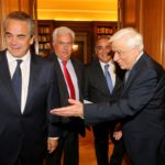ΠΡΟΕΔΡΟΣ: Σας ευχαριστώ που είσθε εδώ. Και θέλω δημόσια να εξηγήσω για ποιο λόγο έγινε αυτή η πρόσκληση. Να θυμάσθε, ότι η στάση σας στο Ευρωπαϊκό Πρωτάθλημα, το οποίο διεξήχθη στην Πρώην Γιουγκοσλαβική Δημοκρατία της Μακεδονίας, ήταν μια στάση συνέπειας και ευθύνης. Όχι μόνο απέναντι στην Πατρίδα μας αλλά απέναντι στο Αθλητικό Ιδεώδες. Απέναντι στο αθλητικό Πνεύμα. Γιατί το ξέρετε άλλωστε, δεν χρειάζεται να το εξηγήσω εγώ. Απλώς το λέω δημόσια: Το γνήσιο Αθλητικό Πνεύμα, το γνήσιο Αθλητικό Ιδεώδες, δεν συμβιβάζεται με χονδροειδείς παραχαράξεις της Ιστορίας, οι οποίες μάλιστα εκδηλώνουν τάσεις αλυτρωτισμού, άρα προσβάλλουν ακόμη και αυτό τούτο το Διεθνές και το Ευρωπαϊκό Δίκαιο. Αυτό που κάνατε λοιπόν, σας τιμά, γιατί υπερασπιστήκατε και την Πατρίδα μας αλλά και τον Αθλητισμό. Και μάλιστα από μια Χώρα που γέννησε το Ολυμπιακό Ιδεώδες. Το οποίο είναι σύμφυτο με την Ιστορική Αλήθεια και με την Ειρήνη. Θέλω δε, με την ευκαιρία αυτή να τονίσω προς την γειτονική Χώρα, την Πρώην Γιουγκοσλαβική Δημοκρατία της Μακεδονίας, ότι όσο συνεχίζει αυτή την τακτική, η οποία όπως είπα είναι αντίθετη με το Διεθνές και το Ευρωπαϊκό Δίκαιο, λόγω του αλυτρωτισμού που αποπνέει, η ίδια υπονομεύει την Ευρωπαϊκή της πορεία. Και είναι υπεύθυνη και για αυτό απέναντι στο Λαό της. Συγχαρητήρια θερμά, συνεχίστε έτσι και να θυμάστε ότι είχατε ελπίδες, σχεδόν βεβαιότητα, για ένα μετάλλιο και για το χρυσό. Προτιμήσατε όμως να μείνετε συνεπείς. Αυτό είναι το μεγαλείο του Αθλητισμού. Αυτό σας διακρίνει και για αυτό είσθε ένα παράδειγμα για τη γενιά σας. Να είσθε καλά. Καλή δύναμη για τα περαιτέρω και κυρίως για τα υπόλοιπα που πρέπει να κάνετε στη ζωή σας.