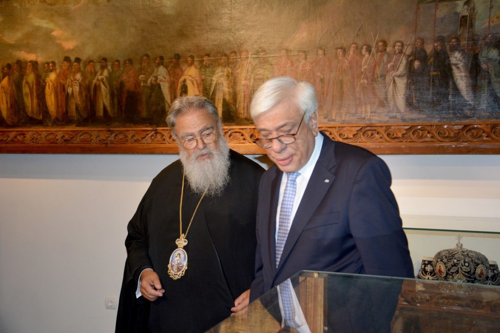 Ο Πρόεδρος της Δημοκρατίας Προκόπης Παυλόπουλος ξεναγείται σε εκθέματα, στο Αρχονταρίκι στης Ιεράς Μονής Αγίου Διονυσίου, την Πέμπτη 24 Αυγούστου 2017. Ο Πρόεδρος της Δημοκρατίας επισκέπτεται τη Ζάκυνθο προκειμένου να παραστεί στον εορτασμό της Επετείου των 300 χρόνων από την Μετακομιδή του Ιερού Λειψάνου του Αγίου Διονυσίου από τις νήσους Στροφάδες στη Ζάκυνθο. ΑΠΕ-ΜΠΕ/ΑΠΕ-ΜΠΕ/ΚΩΣΤΑΣ ΣΥΝΕΤΟΣ