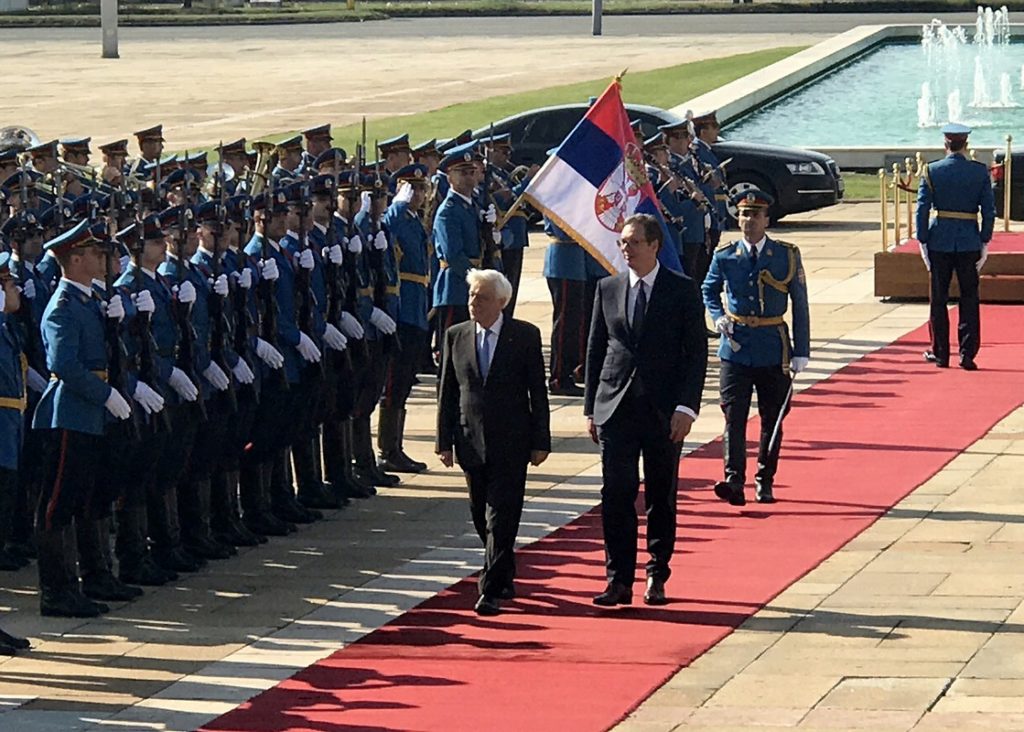 Ο Πρόεδρος της Δημοκρατίας της Σερβίας Aleksandar Vučić υποδέχεται τον Πρόεδρο της Δημοκρατίας Προκόπη Παυλόπουλο, στο «Palata Srbija”, τη Δευτέρα 2 Οκτωβρίου 2017. Μετά από πρόσκληση του Προέδρου της Δημοκρατίας της Σερβίας, Aleksandar Vučić, ο Πρόεδρος της Δημοκρατίας Προκόπης Παυλόπουλος, πραγματοποιεί διήμερη επίσημη επίσκεψη στη Δημοκρατία της Σερβίας. ΑΠΕ- ΜΠΕ/ΑΠΕ- ΜΠΕ/STR