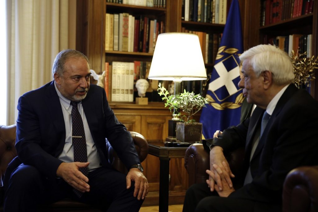 Ο Πρόεδρος της Δημοκρατίας Προκόπης Παυλόπουλος (Δ) συνομιλεί με τον υπουργό Άμυνας του Ισραήλ Avigdor Liberman (Α), κατά την διάρκεια της συνάντησης τους στο Προεδρικό Μέγαρο, την Δευτέρα 6 Νοεμβρίου 2017. ΑΠΕ-ΜΠΕ /ΑΠΕ-ΜΠΕ/ ΑΛΕΞΑΝΔΡΟΣ ΒΛΑΧΟΣ
