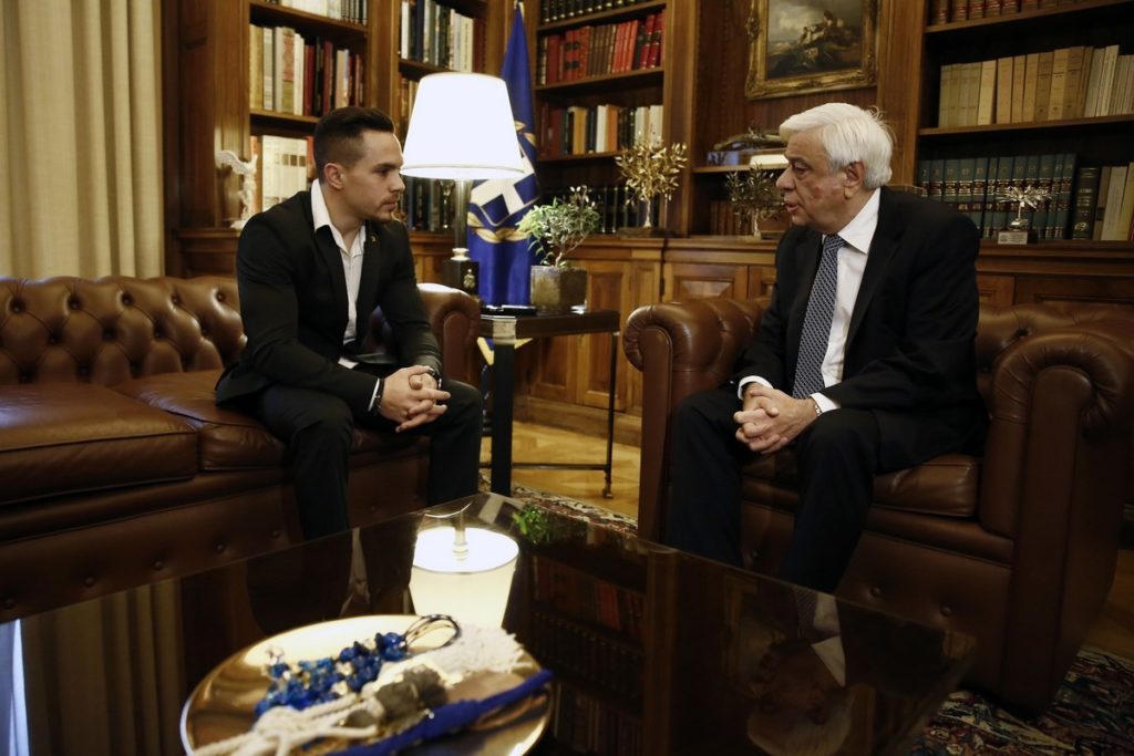 ΠΡΟΕΔΡΟΣ: Ίσως κάποιοι να διερωτώνται γιατί συναντιόμαστε σήμερα. Θα μπορούσαμε να το ΄χουμε αναβάλει. Θα μπορούσα να επικαλεστώ το ότι οι υποχρεώσεις σου είναι πολλές και ότι θα συναντιόμασταν μετά από πολύ καιρό. Αλλά προτιμώ να πω ότι αυτή την μέρα πένθους, επέλεξα κι εγώ να μην αναβάλλουμε αυτό το ραντεβού, γιατί η εδώ παρουσία σου σηματοδοτεί πολλά. Σε μια μέρα πένθους που χειμάζεται ένα κομμάτι των συμπολιτών μας εδώ δίπλα στην Δυτική Αττική, εσύ, οι συναθλητές σου, αυτή η γενιά που έχει δώσει τόσα, δείχνει ότι ο Λαός μας αντέχει και θα αντέξει. Όσο υπάρχουν άνθρωποι όπως εσείς, άνθρωποι που εκφράζουν την αριστεία σε μια αρμονική σύνθεση των επιδόσεων και του ήθους, θα αντέξουμε. Αρκεί να πάρει καθένας από τη νέα γενιά αλλά και από τους μεγαλύτερους το δικό σας παράδειγμα. Λευτέρη μου, καλή δύναμη, συνέχισε και οι καθημερινές δυσκολίες και οι ελλείψεις που υπάρχουν ας μην σε κλονίσουν ποτέ. Οι δικές σου δυνατότητες μπορούν να τα υπερνικήσουν όλα αυτά. Και στο πρόσωπό σου στέλνω αυτόν τον χαιρετισμό τούτη τη δύσκολη μέρα σ’ όλους εσάς που μας κάνατε περήφανους όλο αυτό το χρονικό διάστημα. Καλωσόρισες και καλή δύναμη.
