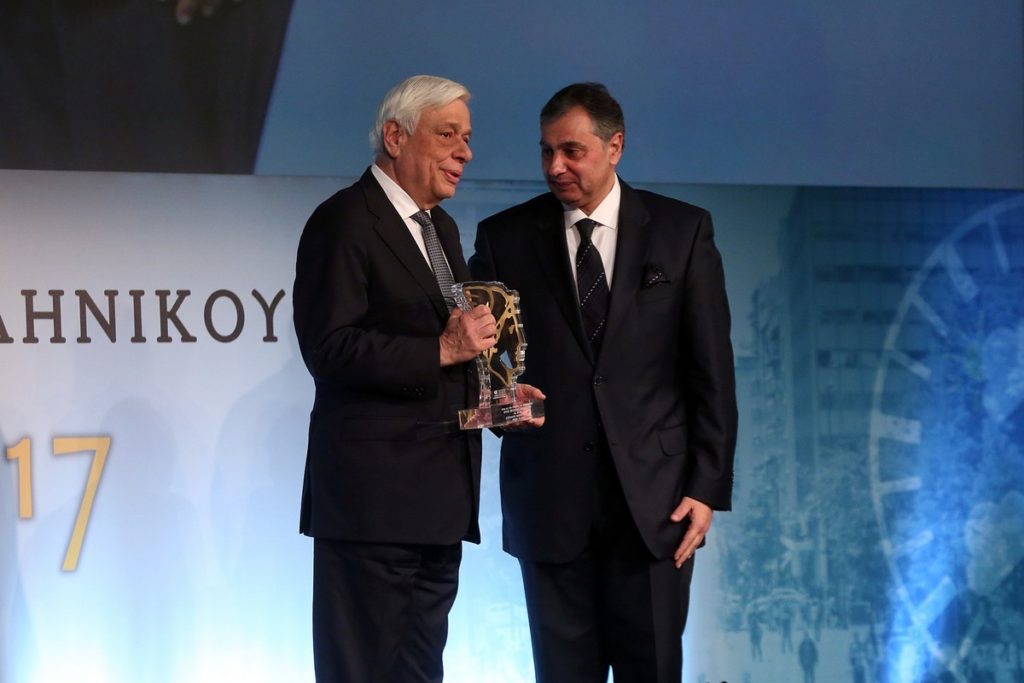 Παραλαμβάνω αυτή την τιμητική διάκριση διευκρινίζοντας ότι επιτέλεσα απέναντι στην Ελληνική Συνομοσπονδία Εμπορίου και Επιχειρηματικότητας ένα στοιχειώδες χρέος αναγνώρισης της προσφοράς της, ιδίως κατά την περίοδο αυτής της μεγάλης κρίσης. Κύριε Πρόεδρε, είπατε ότι συμπορευθήκαμε, στο πλαίσιο του ρόλου μου φυσικά. Το ξανατονίζω, είναι στοιχειώδες χρέος μου, γιατί το αξίζετε. Μέσα σ’ αυτή την κρίση φανήκατε αντάξιοι της αποστολής σας. Υπερασπισθήκατε την επιχειρηματικότητα μέσα στην ύφεση, μέσα σ’ αυτόν τον ορυμαγδό που στοίχισε το 1/3 του ΑΕΠ εν καιρώ ειρήνης στην Χώρα μας. Και χάρη σ’ εσάς με τεράστιες θυσίες, με τεράστιο κόστος, άντεξε και αντέχει αυτή η ραχοκοκαλιά της ελληνικής επιχειρηματικότητας, οι Μικρομεσαίες επιχειρήσεις.