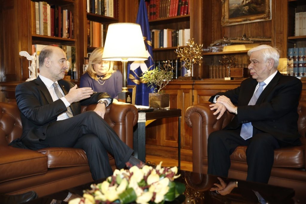 ΠΡΟΕΔΡΟΣ: Κύριε Επίτροπε, σας καλωσορίζω στην Προεδρία της Δημοκρατίας, για μιαν ακόμη φορά. Γνωρίζετε πόσο ευπρόσδεκτος είσθε στην Αθήνα και στην Προεδρία της Δημοκρατίας. Για μια ακόμη φορά, τώρα που βρισκόμαστε στο τέλος του Ελληνικού Προγράμματος, θέλω να σας ευχαριστήσω θερμώς για την συμβολή σας προς αυτή την κατεύθυνση. Όπως θέλω να σας ευχαριστήσω και για την συμβολή σας στο να ξεκινήσει όλη η διαδικασία για την ελάφρυνση του Δημοσίου Χρέους της Ελλάδας, που είναι και υποχρέωση των Εταίρων μας.
