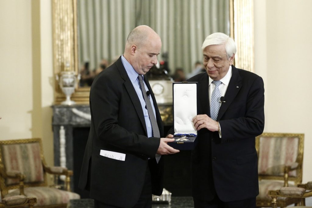 ΠΡΟΕΔΡΟΣ: Κύριε Δρακόπουλε, εκ μέρους της Πολιτείας σας απονέμω αυτή την ανώτατη διάκριση, διότι ως επικεφαλής του «Ιδρύματος Σταύρος Νιάρχος» έχετε συνεισφέρει τα μέγιστα στη Χώρα μας, και μάλιστα σε μια εξαιρετικά κρίσιμη περίοδο. Η προσφορά αυτή εκτείνεται σε δύο πεδία: Το πρώτο είναι ο Πολιτισμός, που αποτελεί τη βάση της Ιστορίας μας και της Κληρονομιάς μας, αλλά και την βάση της συνεισφορά μας στη Δύση και στην Ευρώπη. Η δεύτερη συμβολή σας, εντελώς πρόσφατη, αλλά και εξαιρετικά επίκαιρη, αφορά την στήριξη του Εθνικού Συστήματος Υγείας και, επομένως, του Κοινωνικού Κράτους στην Ελλάδα. Αυτή η συνεισφορά σας, σε μια περίοδο όπου η βαθιά κοινωνική και οικονομική κρίση έχει θίξει τις ίδιες τις βάσεις του Κοινωνικού Κράτους, συνιστά συνεισφορά η οποία στηρίζει την κοινωνική συνοχή, αποτρέπει τη ρήξη του κοινωνικού ιστού. Και, επιπλέον, επιτρέπει στην Ελλάδα να αντιμετωπίσει τον Άνθρωπο γενικότερα -όχι μόνο τον Έλληνα- όπως αρμόζει, αφού η υγεία είναι η βάση για να υπερασπισθεί την αξία του και να αναπτύξει ελεύθερα την προσωπικότητά του.