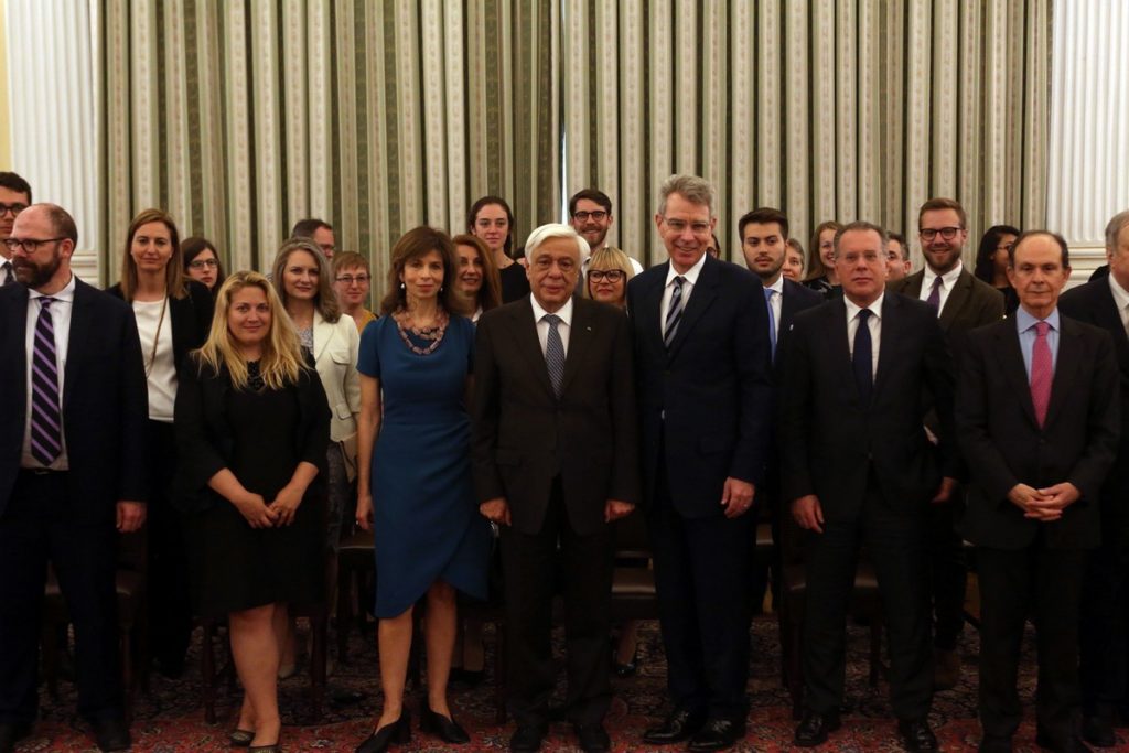 ΠΡΟΕΔΡΟΣ: Σας υποδέχομαι στην Προεδρία της Δημοκρατίας προκειμένου να τιμήσω, συμβολικώς αλλά και εμπράκτως, την εμβληματική επέτειο της συμπλήρωσης 70 χρόνων από την υπογραφή της διακρατικής συμφωνίας μεταξύ Ελλάδας και Η.Π.Α.,ως προς την έναρξη του προγράμματος Fulbright στην Ελλάδα.