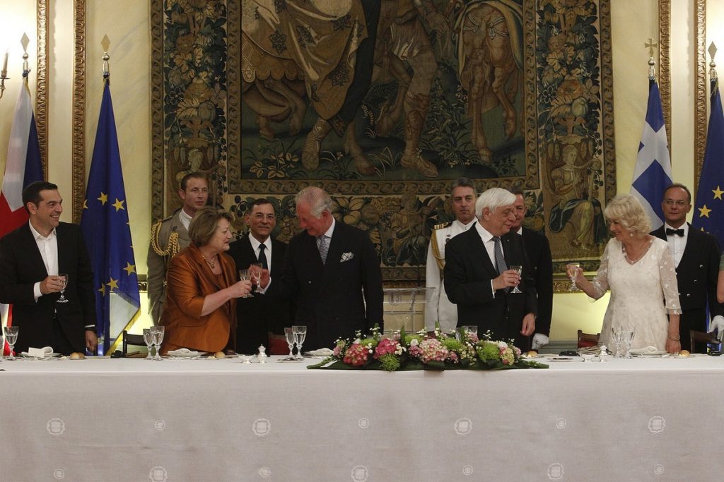 Υποδέχομαι με ιδιαίτερη χαρά εσάς και την Α.Β.Υ. την Δούκισσα της Κορνουάλης, στην Ελλάδα, την οποία άλλωστε έχετε επισκεφθεί ιδιωτικώς πολλές φορές στο παρελθόν, δείχνοντας έτσι την ειλικρινή αγάπη σας για την Χώρα μου. Αυτή την χαρά την ενισχύει το γεγονός ότι στην Ελλάδα πραγματοποιείται η πρώτη σας επίσημη επίσκεψη αφότου, με απόφαση της τελευταίας Συνόδου Κορυφής της Κοινοπολιτείας, επιλεγήκατε ως ο επόμενος επικεφαλής της Κοινοπολιτείας. Και δεχθείτε, παρακαλώ, τα θερμά μας συγχαρητήρια γι’ αυτό.