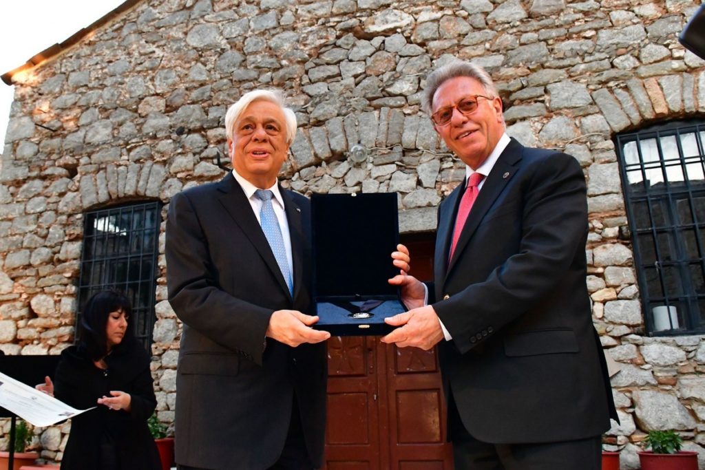 Ο Πρόεδρος της Ελληνικής Δημοκρατίας, Προκόπης Παυλόπουλος (Α), απονέμει το βραβείο "Γ. Τερτσέτης- Α. Πολυζωίδης" στον Πρόεδρο της Ευρωπαϊκής Επιτροπής της Βενετίας, Dr. Gianni Buquicchio (Δ), ως εξέχουσα προσωπικότητα της Δικαιοσύνης, μπροστά από το εκκλησάκι του Αγίου Ανδρέα, στο ιστορικό κάστρο του Παλαμηδίου στο Ναύπλιο, Σάββατο 12 Μαΐου 2018. Στον Πρόεδρο της Δημοκρατίας απενεμήθη νωρίτερα το αριστείο πολιτειακής αξίας "Ιωάννης Καποδίστριας" από τον Δήμαρχο Ναυπλίου, Δημήτρη Κωστούρο (δεν εικονίζεται). ΑΠΕ-ΜΠΕ/ ΑΠΕ-ΜΠΕ/ ΜΠΟΥΓΙΩΤΗΣ ΕΥΑΓΓΕΛΟΣ