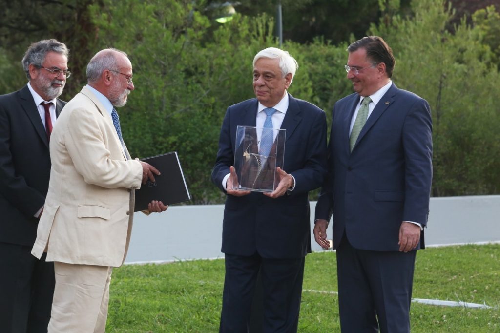 Ο Πρόεδρος της Δημοκρατίας Προκόπιος Παυλόπουλος (3Α), ο δήμαρχος Φιλοθέης – Ψυχικού, Παντελής Ξυριδάκης (Δ), ο πρόεδρος του Ιδρύματος Γεωργίου Ζολογγόπουλου, Νίκος Θεοδωρίδης (2Α), και ο αρχιτέκτονας και Γενικός διευθυντής του Ιδρύματος Γ. Ζογγολόπουλου, Άγγελος Μωρέτης (Α), στα εγκαίνια της «Υπαίθριας Δημοτικής Γλυπτοθήκης Ψυχικού», στην Πλατεία Ζογγολόπουλου, που πραγματοποίησε ο Πρόεδρος της Δημοκρατίας, την Τετάρτη 23 Μαΐου 2018. ΑΠΕ ΜΠΕ/ΑΠΕ ΜΠΕ/Αλέξανδρος Μπελτές
