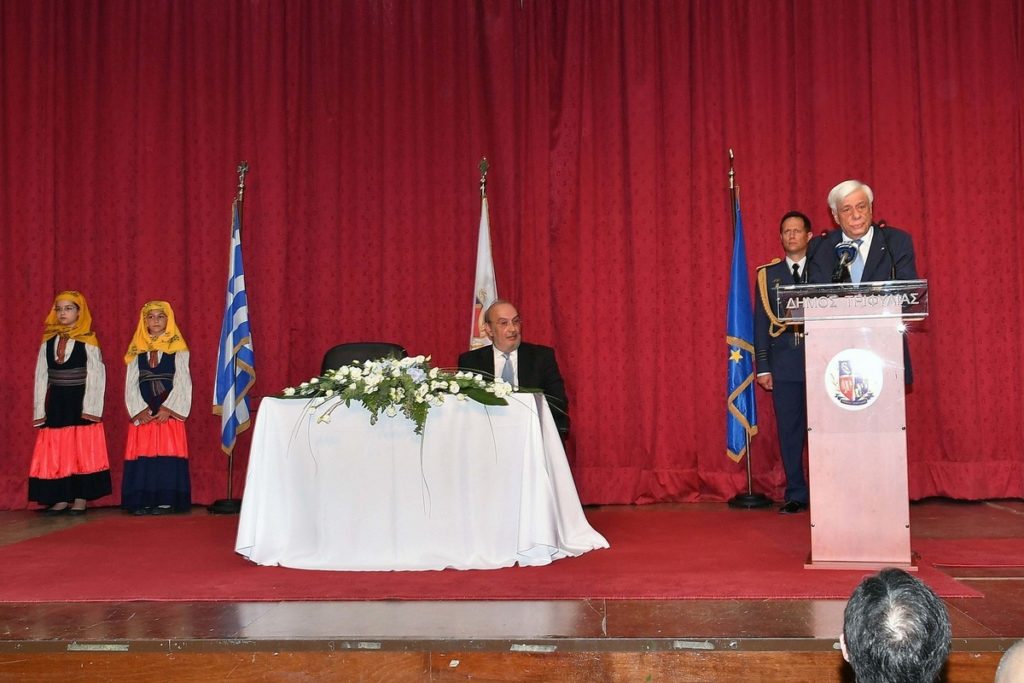 Σας ευχαριστώ θερμώς για την μεγάλη τιμή την οποία σήμερα -και μάλιστα κατά την μεγάλη γιορτή της Χριστιανοσύνης, την εορτή της Πεντηκοστής και του Αγίου Πνεύματος-  μου περιποιείτε, υπό την ιδιότητά μου ως Προέδρου της Δημοκρατίας, απονέμοντάς μου τον τίτλο του Επίτιμου Δημότη Τριφυλίας. Ενός Τόπου με λαμπρή ιστορία αγώνων υπέρ της Πατρίδας και της Ελευθερίας, που χάνεται στα βάθη των αιώνων, αλλά και με μεγάλη πολιτισμική κληρονομιά, από την αρχαιότητα ως την εποχή μας.