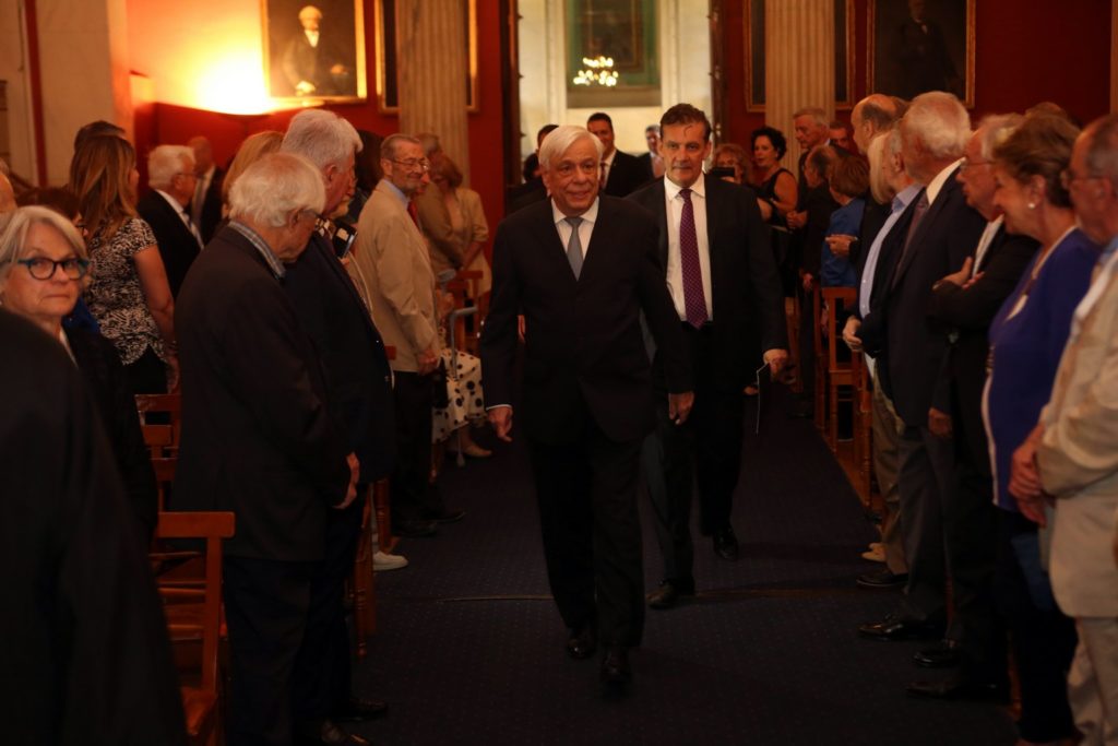 Ο Πρόεδρος της Δημοκρατίας Προκόπης Παυλόπουλος (Κ), κατά την άφιξή του στη Μεγάλη Αίθουσα του Εθνικού και Καποδιστριακού Πανεπιστημίου Αθηνών για να παραστεί και να κηρύξει την έναρξη των εργασιών του 1ου Διεθνούς Συνεδρίου της Ευρωπαϊκής Ένωσης Ομότιμων Καθηγητών με γενικό θέμα: «The Capital of Knowledge» (Το Κεφάλαιο της Γνώσης), Παρασκευή 31 Μαϊου 2019. ΑΠΕ-ΜΠΕ/ΑΠΕ-ΜΠΕ/Αλέξανδρος Μπελτές