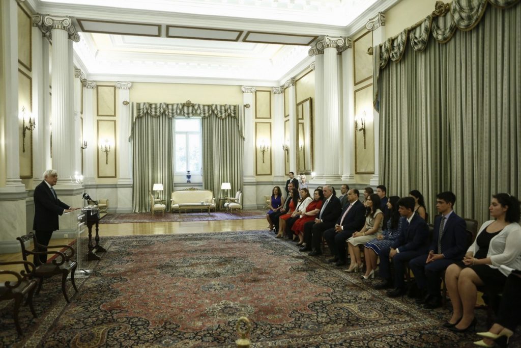Χαιρετισμός του Προέδρου της Δημοκρατίας κ.Προκοπίου Παυλοπούλου κατά τη συνάντησή του με ομάδα Ελληνο-Αμερικανών φοιτητών του AHI στο Προεδρικό Μέγαρο