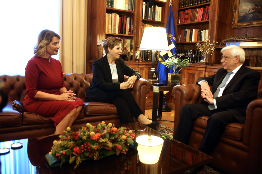 ΟΛΓΑ ΓΕΡΟΒΑΣΙΛΗ: Πρόεδρε, ευχαριστούμε πολύ που μας δεχθήκατε σήμερα. Είμαστε εδώ για να σας ενημερώσουμε για θέματα αρμοδιότητος του Υπουργείου Προστασίας του Πολίτη – έχετε μεγάλη εμπειρία – για να συζητήσουμε θέματα που αφορούν και την Ελληνική Αστυνομία, τα θέματα της αστυνόμευσης, το καινούργιο σχέδιο που μπήκε από σήμερα, στις 6 το πρωί, σε εφαρμογή της εμφανούς αστυνόμευσης και, φυσικά, τα θέματα πυροσβεστικής και πολιτικής προστασίας και την δουλειά που κάνουμε για την αναβάθμιση της πολιτικής προστασίας στη χώρα. Θέματα που έχει μεγάλο ενδιαφέρον να τα συζητήσουμε μαζί, με δεδομένο ότι αποτελούν συστατικά στοιχεία της διεύρυνσης και της διαρκούς διεκδίκησης της δημοκρατίας.