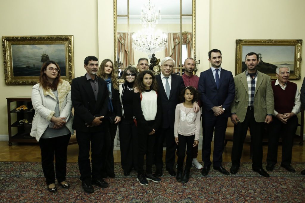 Από την συνάντηση του Προέδρου της Δημοκρατίας κ.Προκοπίου Παυλοπούλου με τον Υπουργό Εσωτερικών κ.Αλέξανδρο Χαρίτση και την Ευρωβουλευτή κα Κωνσταντίνα Κούνεβα, οι οποίοι συνόδευσαν τους τρεις αλλοδαπούς αλιείς που πολιτιγραφήθηκαν τιμητικώς σε ένδειξη αναγνώρισης για την μέχρις αυτοθυσίας βοήθειά τους προς τους πυρόπληκτους, κατά την διάρκεια της πυρκαγιάς στην Ανατολική Αττική