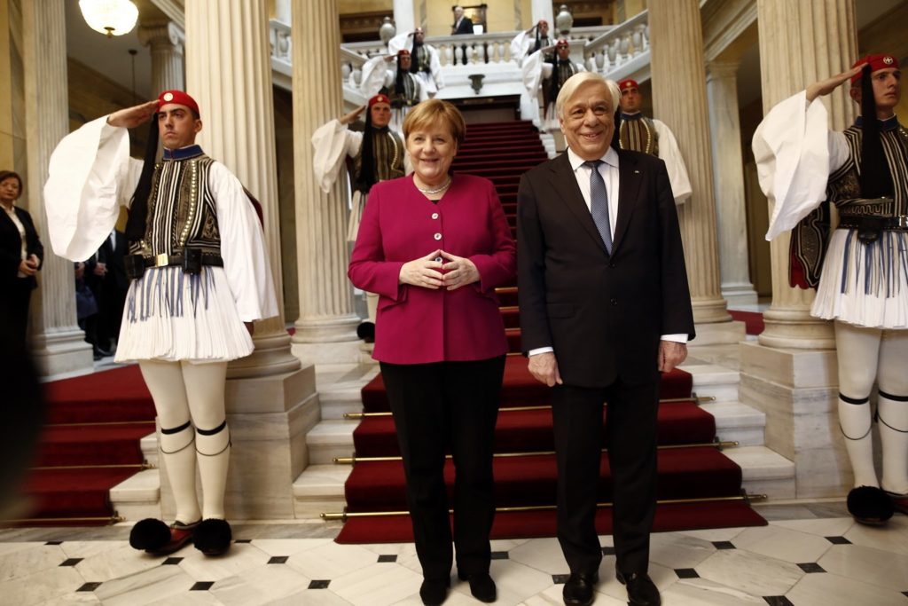 Ο Πρόεδρο της Δημοκρατίας Προκόπης Παυλόπουλος υποδέχεται τη Γερμανίδα καγκελάριο Άνγκελα Μέρκελ κατά τη διάρκεια της συνάντησής τους, την Παρασκευή 11 Ιανουαρίου 2019, στο Προεδρικό Μέγαρο. Η Γερμανίδα καγκελάριος πραγματοποιεί διήμερη επίσημη επίσκεψη στην Αθήνα. ΑΠΕ-ΜΠΕ/ΑΠΕ-ΜΠΕ/ΑΛΕΞΑΝΔΡΟΣ ΒΛΑΧΟΣ