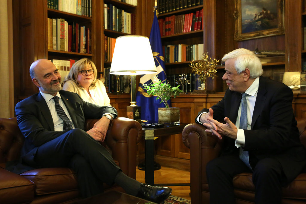 Από τη συνάντηση του Προέδρου της Δημοκρατίας κ.Προκοπίου Παυλοπούλου με τον Επίτροπο της Ευρωπαϊκής Επιτροπής αρμόδιο για τις Οικονομικές και τις Δημοσιονομικές Υποθέσεις, την Φορολογία και τα Τελωνεία, κ.Pierre Moscovici στο Προεδρικό Μέγαρο