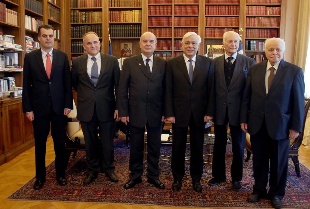 Ο Πρόεδρος της Δημοκρατίας Προκόπης Παυλόπουλος (3ος Δ) φωτογραφίζεται με τα μέλη του Διοικητικού Συμβούλιου του Πατριωτικού Ομίλου Απογόνων Αγωνιστών 1821, στο Προεδρικό Μέγαρο, Τρίτη 22 Ιανουαρίου 2019. ΑΠΕ ΜΠΕ/ΑΠΕ ΜΠΕ/ ΑΛΕΞΑΝΔΡΟΣ ΜΠΕΛΤΕΣ