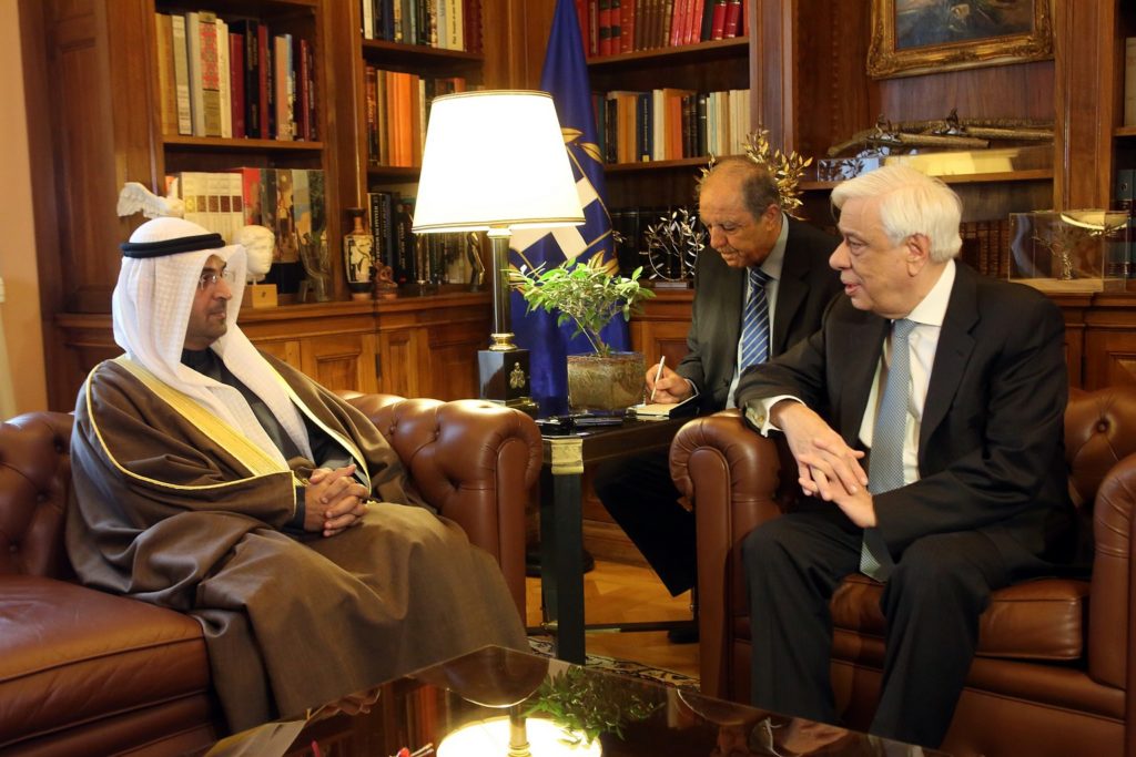 ΠΡΟΕΔΡΟΣ: Kύριε Υπουργέ, σας καλωσορίζω στην Προεδρία της Δημοκρατίας. Και θέλω να σας συγχαρώ για την επιτυχία – που είναι ήδη ορατή – της επίσκεψής σας στην Αθήνα, όπως αποδεικνύει η εξέλιξη της πρώτης Μικτής Διυπουργικής Επιτροπής μεταξύ Ελλάδας και Κουβέϊτ. Γιατί είναι γνωστό ότι ήδη οι διαδικασίες «τρέχουν» αλλά τα αποτελέσματα είναι ορατά. Είμαι βέβαιος ότι αυτό αποδεικνύει όχι μόνο πόσο καλές είναι οι σχέσεις μας αλλά και πόσο, γενικότερα, οι σχέσεις αυτές μπορούν να γίνουν καλύτερες μέσα από επισκέψεις όπως αυτή, η δική σας.