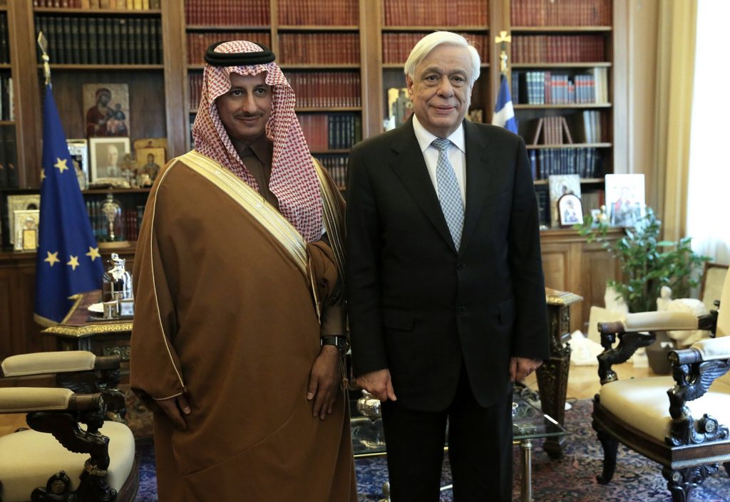 Ο Πρόεδρος της Δημοκρατίας Προκόπης Παυλόπουλος (Δ) υποδέχεται τον υπουργό Τουρισμού και Εθνικής Κληρονομιάς της Σαουδικής Αραβίας, Ahmad bin Aqil al-Khatib (Α) κατά τη συνάντησή τους στο Προεδρικό Μέγαρο, Αθήνα, Τετάρτη 20 Μαρτίου 2019. ΑΠΕ-ΜΠΕ/ΑΠΕ-ΜΠΕ/ΣΥΜΕΛΑ ΠΑΝΤΖΑΡΤΖΗ