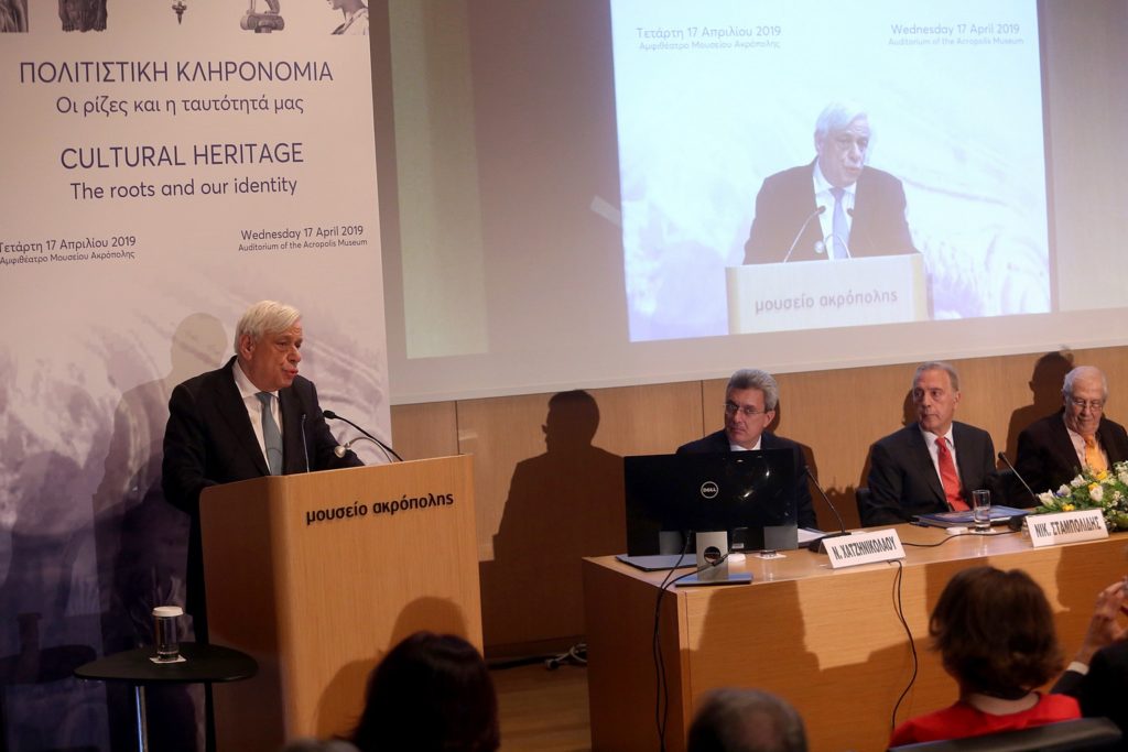 Ο Πρόεδρος της Δημοκρατίας Προκόπης Παυλόπουλος κατά την ομιλία του στη σημερινή εκδήλωση για την παρουσίαση του λευκώματος " Ελληνικά Μνημεία Παγκόσμιας Κληρονομιάς UNESCO από το Ίδρυμα Μαριάννα Β. Βαρδινογιάννη, στο Μουσείο Ακρόπολης, Τετάρτη 17 Απριλίου 2019. ΑΠΕ-ΜΠΕ/ΑΠΕ-ΜΠΕ/Αλέξανδρος Μπελτές