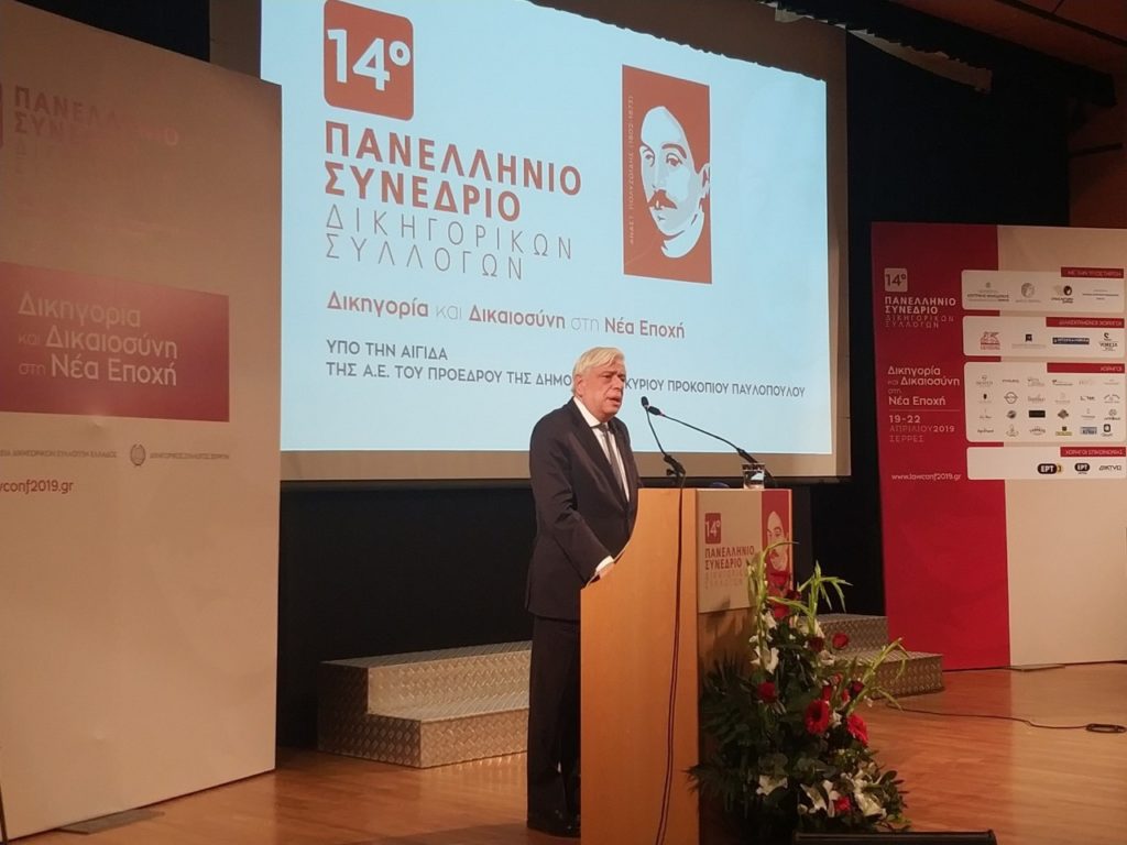 Αισθάνομαι ιδιαίτερη τιμή συμμετέχοντας σε αυτό το Πανελλήνιο Συνέδριο των Δικηγορικών Συλλόγων το οποίο, σε μιαν εξαιρετικά κρίσιμη μάλιστα περίοδο για την λειτουργία της Δικαιοσύνης και την άσκηση του Δικηγορικού Λειτουργήματος, είναι αφιερωμένο στον θεσμικό ρόλο του Δικηγόρου ως Συλλειτουργού της Δικαιοσύνης. Τα αισθήματά μου αυτά απορρέουν από το ότι συμμετέχω στο Συνέδριό σας πρωτίστως βεβαίως υπό την ιδιότητά μου ως Προέδρου της Δημοκρατίας ο οποίος, σύμφωνα με τις κατά το Σύνταγμα αρμοδιότητες του Ρυθμιστή του Πολιτεύματος, οφείλει να υπερασπίζεται και την Δικαστική Εξουσία κατά την άσκηση του δικαστικού της έργου, κατ’ εξοχήν δε οφείλει να υπερασπίζεται, στο μέτρο που του αναλογεί θεσμικώς, την Ανεξαρτησία -προσωπική και λειτουργική- των Δικαστικών Λειτουργών. Όμως, τα ως άνω αισθήματά μου απορρέουν και από το ότι, επί πολλά έτη και ενεργώς, άσκησα το Δικηγορικό Λειτούργημα, κάτι το οποίο με ακολουθεί και θα με ακολουθεί στο διηνεκές, οιαδήποτε άλλα καθήκοντα και αν ασκώ.