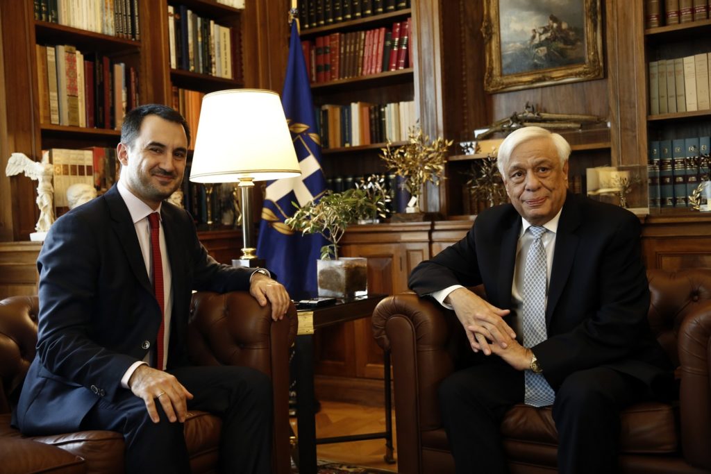 Ï Ðñüåäñïò ôçò Äçìïêñáôßáò Ðñïêüðçò Ðáõëüðïõëïò (Ä) õðïäÝ÷åôáé ôïí õðïõñãü Åóùôåñéêþí ÁëÝîáíäñï ×áñßôóç (Á) óôç óõíÜíôçóç ðïõ åß÷áí óôï Ðñïåäñéêü ÌÝãáñï, ÐáñáóêåõÞ 24 ÌáÀïõ 2019 ÁÐÅ-ÌÐÅ/ÁÐÅ-ÌÐÅ/ÁËÅÎÁÍÄÑÏÓ ÂËÁ×ÏÓ