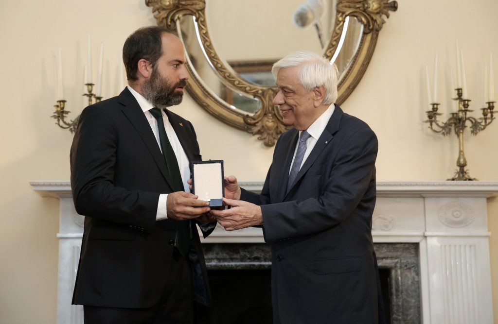 Σας επιδίδω το Παράσημο του Ταξιάρχη του Φοίνικος για την πολύπλευρη προσφορά σας προς την Πατρίδα μας, εντός και εκτός συνόρων.