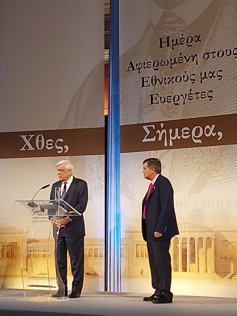 Απονέμοντάς σας το Χρυσό Μετάλλιο του Ζαππείου -και μάλιστα κατά την Ημέρα Μνήμης των Εθνικών Ευεργετών και κατά την εκδήλωση για τον Εθνικό Ευεργέτη Ευαγγέλη Ζάππα- η Επιτροπή Ολυμπίων και Κληροδοτημάτων σας αποδίδει αυτό που σας αναλογεί. Και τούτο, διότι με την εμβληματική κοινωνική προσφορά σας έχετε αναδειχθεί, κατά γενική ομολογία, σε αυθεντικό Ευπατρίδη, ο οποίος συνεχίζει επαξίως την μεγάλη παράδοση των Εθνικών Ευεργετών. Παράδοση, η οποία συνδέεται αρρήκτως με την όλη πορεία και την ενεργό στήριξη του Νεώτερου Ελληνικού Κράτους, καθ’ όλη την διαδρομή του, ιδίως δε σε χαλεπούς καιρούς.